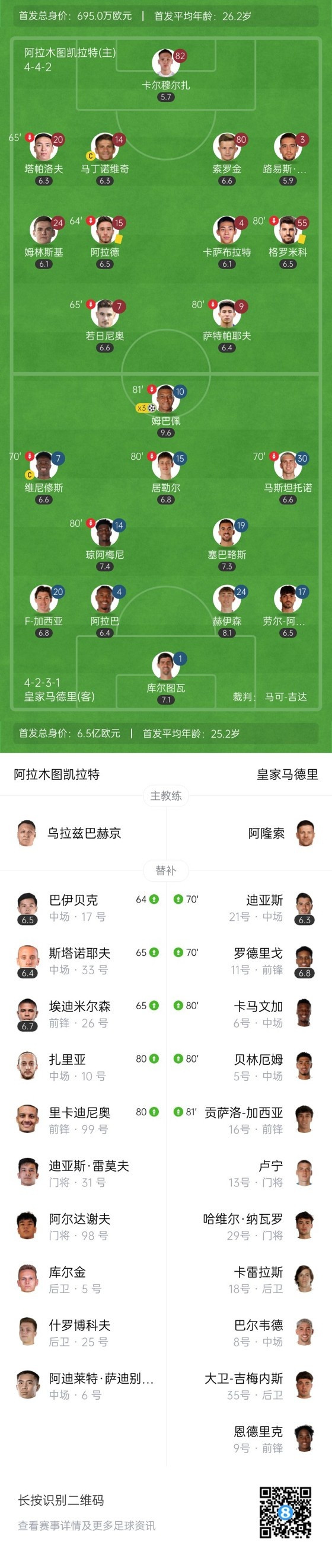 第82分钟,皇马再下一城!罗德里戈左路长途奔袭后下底传到门前卡马文加头球破门,凯拉特0-4皇马。↓