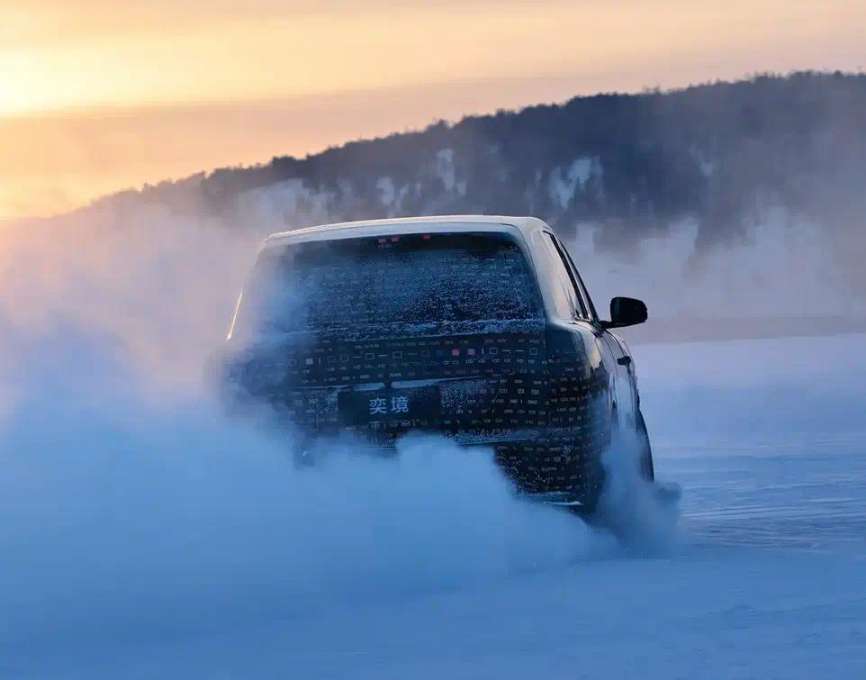 通过谍照可以看到,新车前脸采用分体式车灯设计,上部日行灯预计采用贯穿式设计,下部两个大灯组也是横置设计。前包围设计稳重,全车采用黑化风格。车头配备有激光雷达。